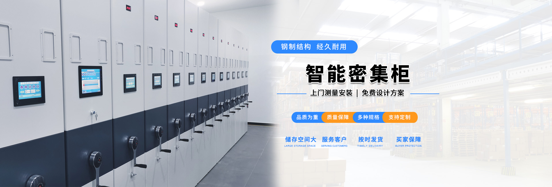 智能密集架主要由架体与智能系统构成,实现了智能化操作,可通过特定指令,语音控制架体,也可通过触屏来操作架体,亦可通过计算机等终端设备远程操控架体,此外智能密集架也设置了应急预案,万一出现停电或其它意外情况,还可以通过手摇摇把实现对架体的操控,避免耽误工作的正常进行。智能密集架具备档案管理功能,查询档案即可获取档案位置信息,点击开架,档案所在列自动打开,在打开过程中,有语音提示、序列灯闪烁、灯光定位、屏幕动画等直观方式引导取档。